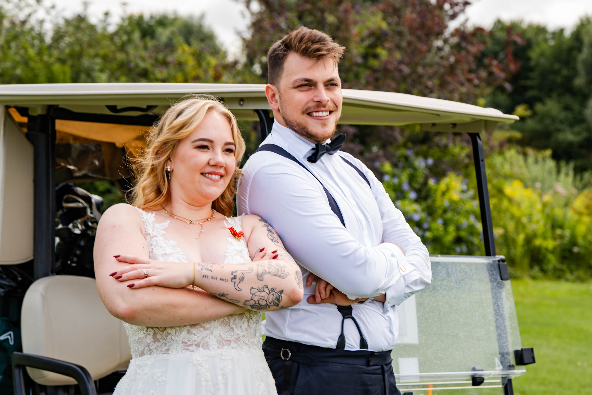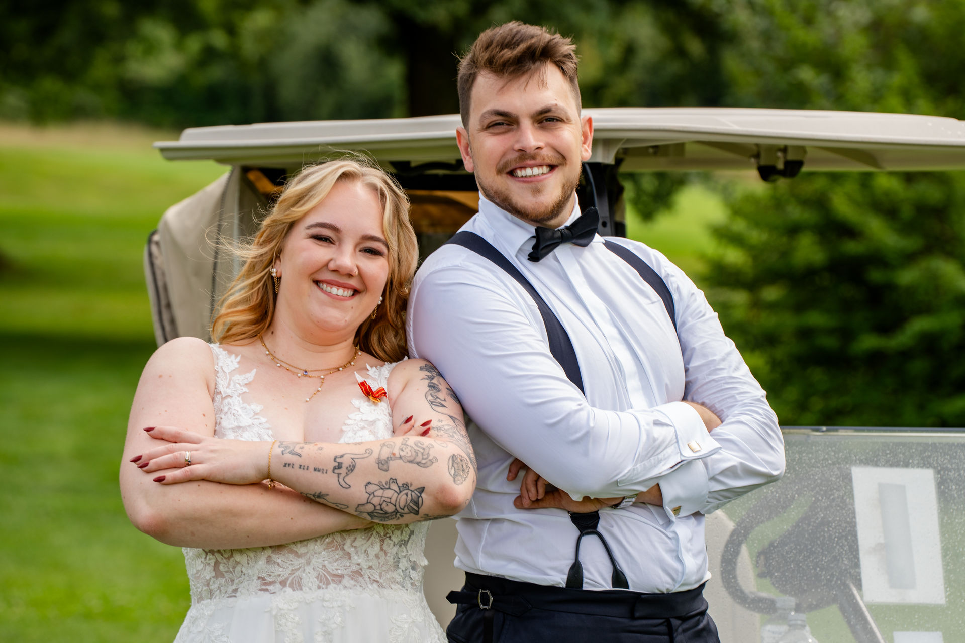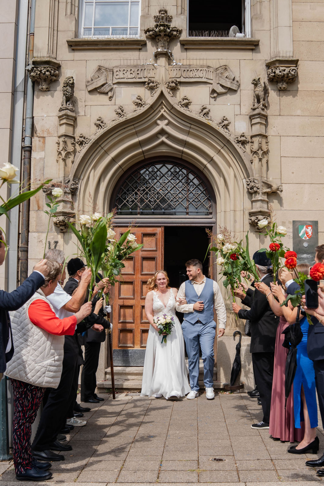 Standesamtliche Trauung im Standesamt Inselstraße in Düsseldorf. Hochzeitsfeier im Golfpark Meerbusch.